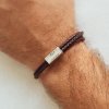 Stylový pánský náramek, kombinující pletený kožený řemínek v tmavě hnědé barvě a stříbrnou chirurgickou ocel. Úžasný dárek za skvělou cenu!